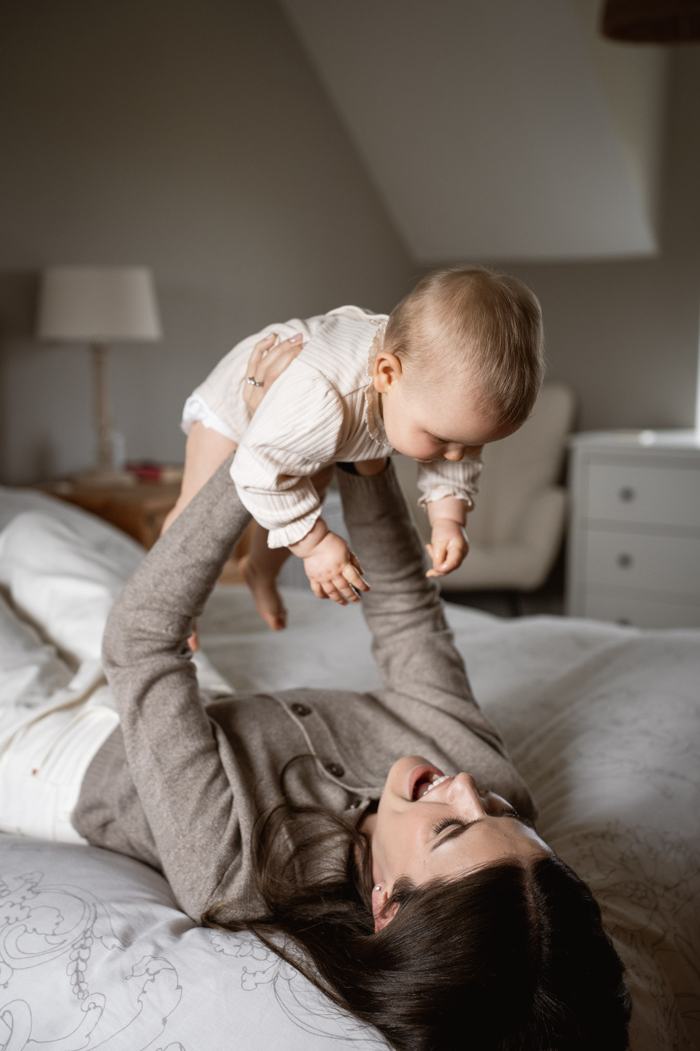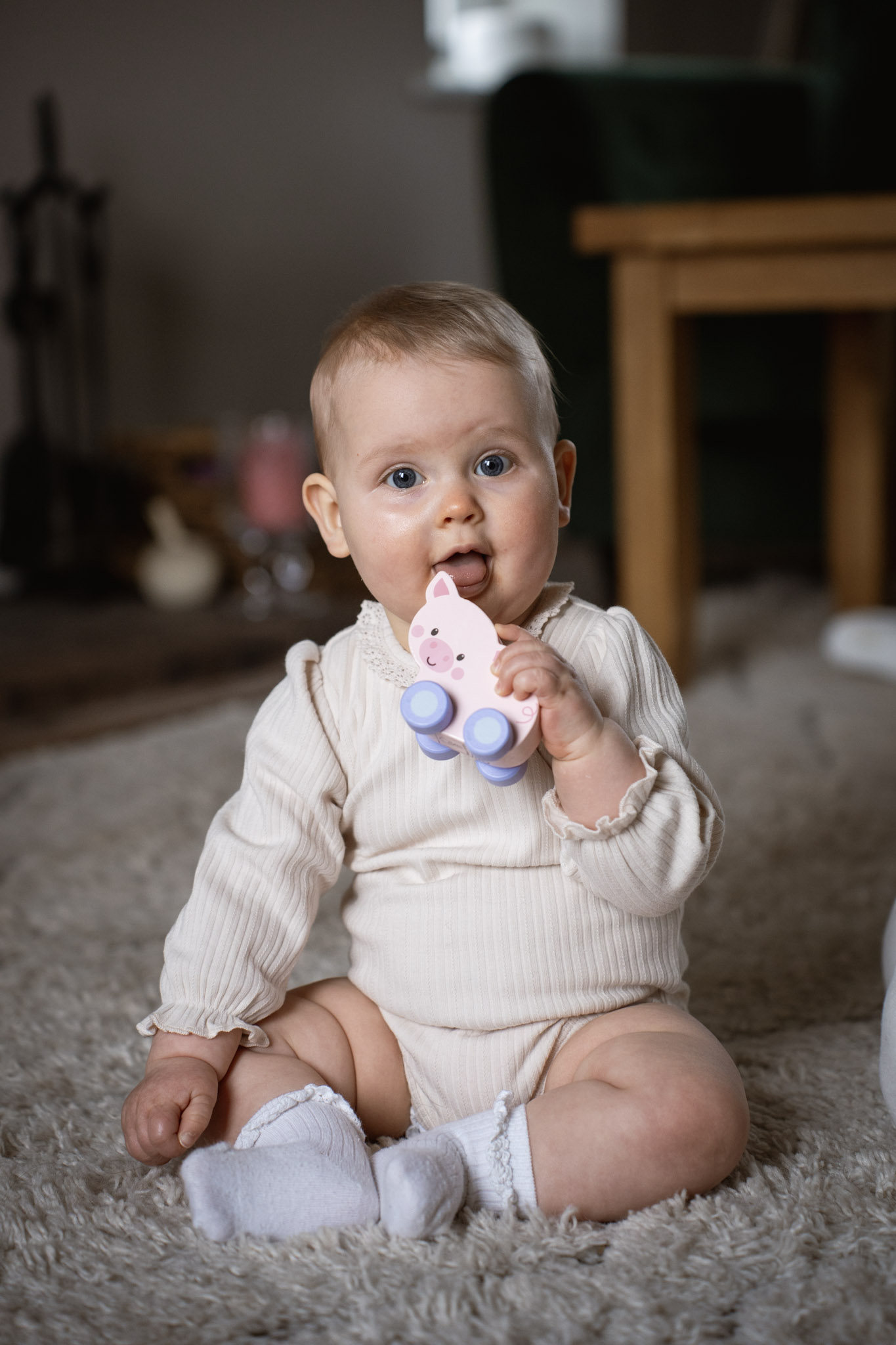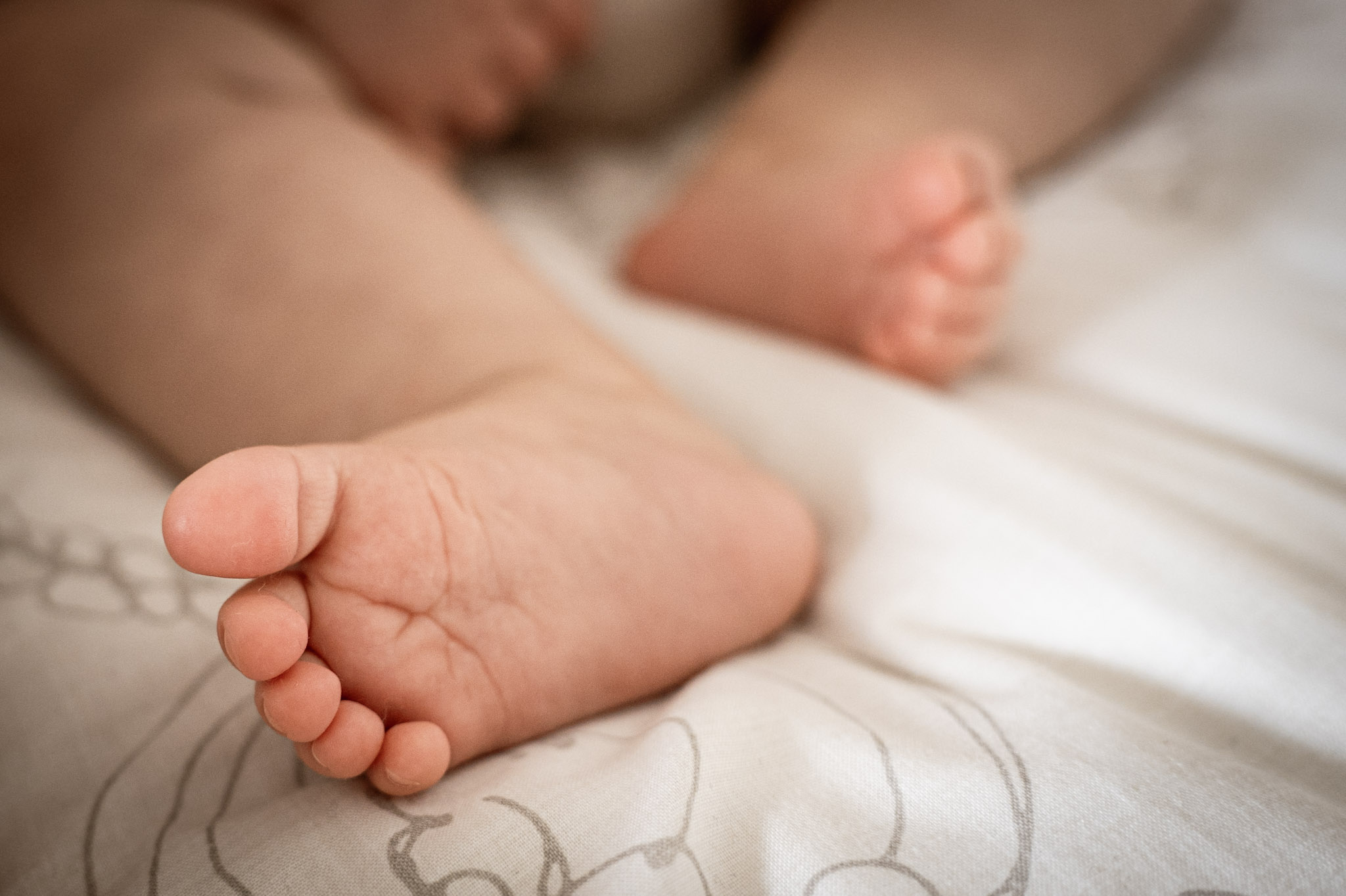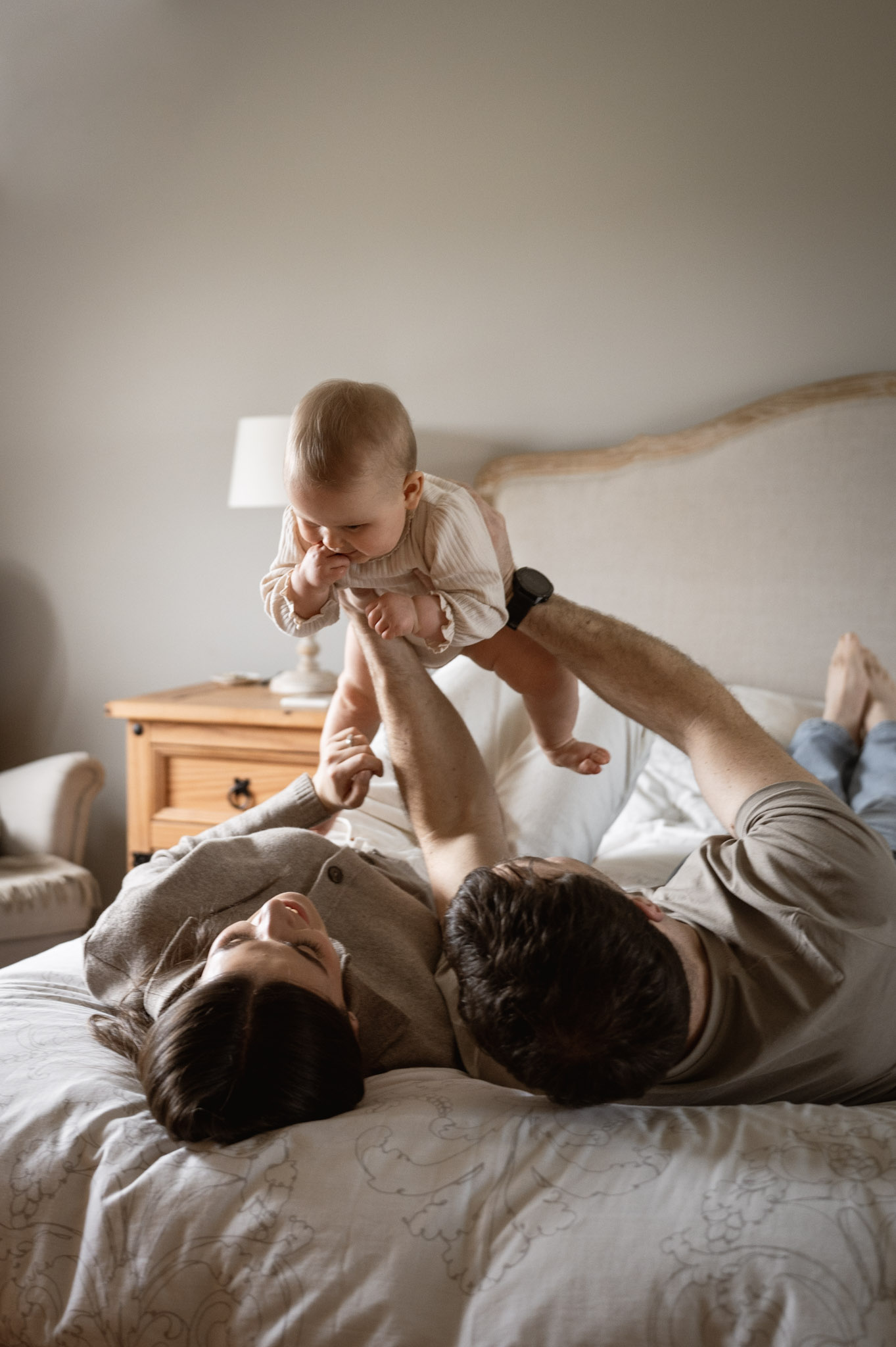Evie was absolutely adorable, especially when discovering her tiny feet and trying very seriously to eat them. Between sleepy yawns, gentle snuggles, and quiet moments with Mum and Dad, the session felt calm, cosy, and full of love.